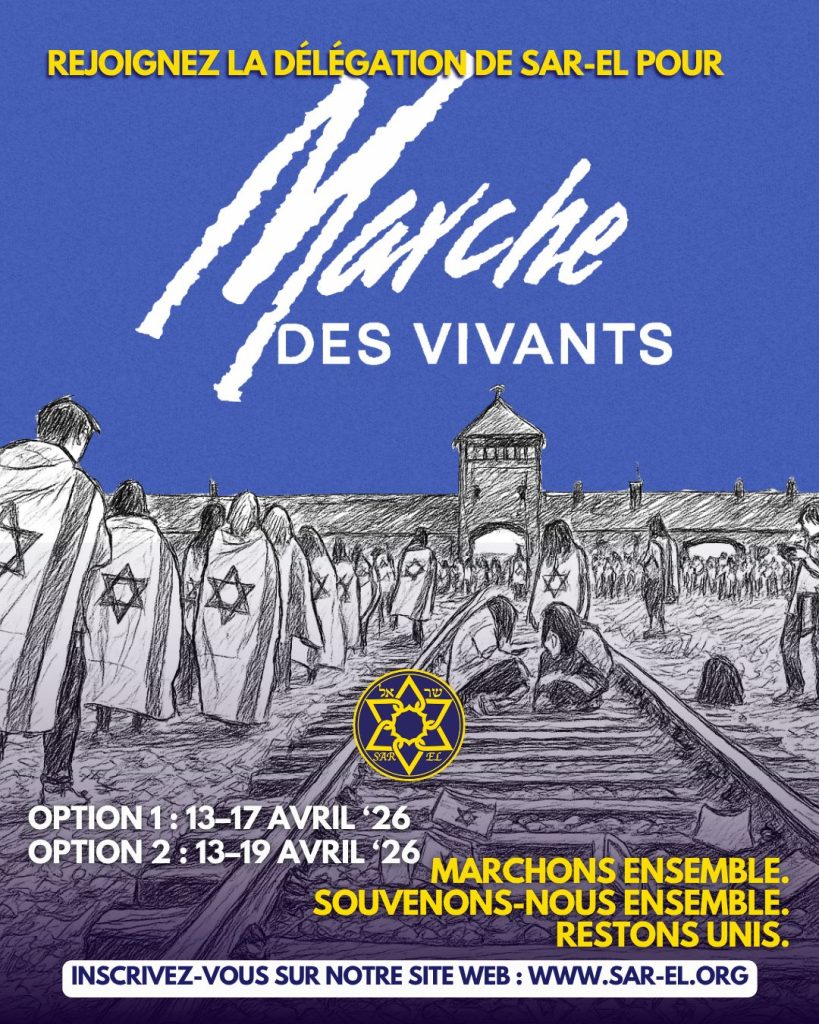 Marcher ensemble. Se souvenir ensemble. Se tenir ensemble. En avril 2026, Sar-El vous invite à rejoindre notre délégation pour un voyage de mémoire, de sens et de mission — une expérience d’une semaine à travers la Pologne, dans le cadre de la Marche internationale des Vivants. Ce voyage est un acte de souvenir, de résilience …
